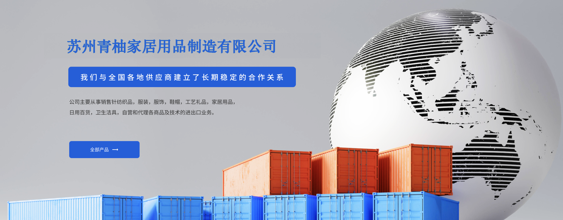 蘇州青柚家居用品制造有限公司,主要從事銷(xiāo)售針紡織品,服裝,服飾,鞋帽,工藝禮品,家居用品,日用百貨,衛(wèi)生潔具,自營(yíng)和代理各商品及技術(shù)的進(jìn)出口業(yè)務(wù)。公司與全國(guó)各地供應(yīng)商建立了長(zhǎng)期穩(wěn)定的合作關(guān)系。為了提供更好的品質(zhì)與服務(wù),旗下設(shè)立了倉(cāng)儲(chǔ),檢品,檢驗(yàn),包裝為一體的公司,確保質(zhì)量的同時(shí)能夠按時(shí)交貨。